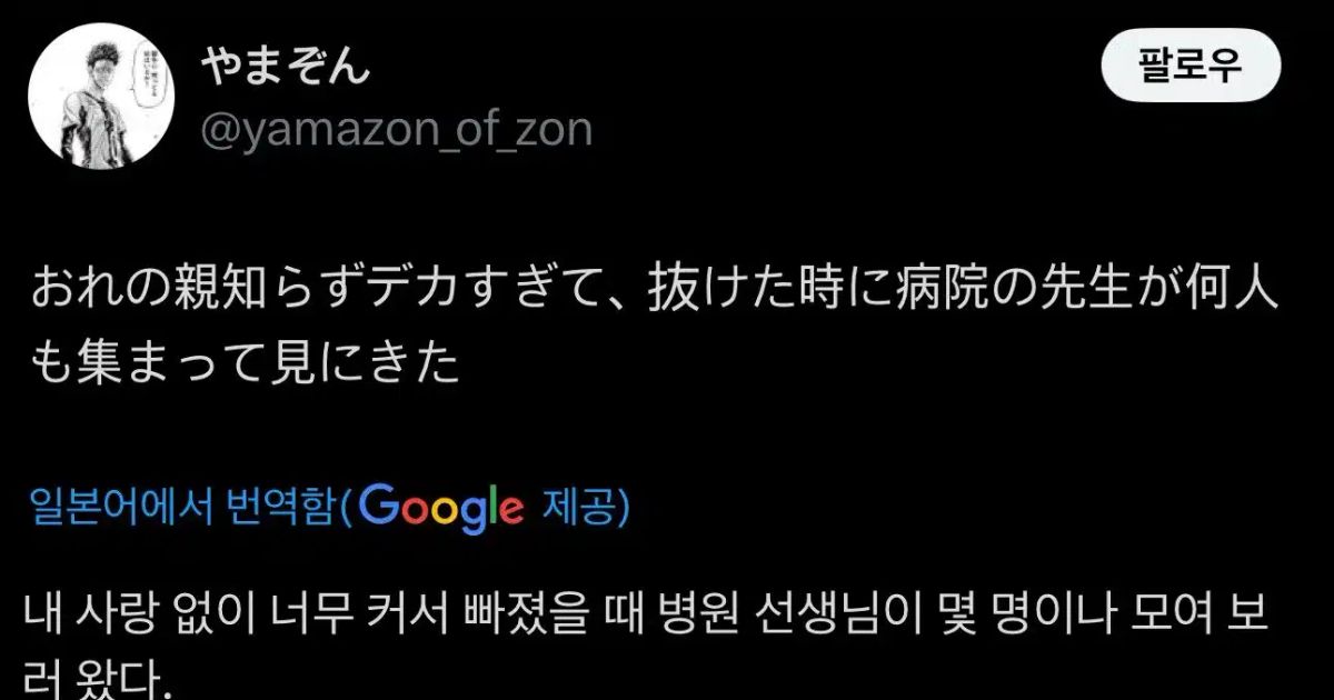 사랑니가 너무 커서 뺄 때 치과의사들이 구경왔다는 일본인,,